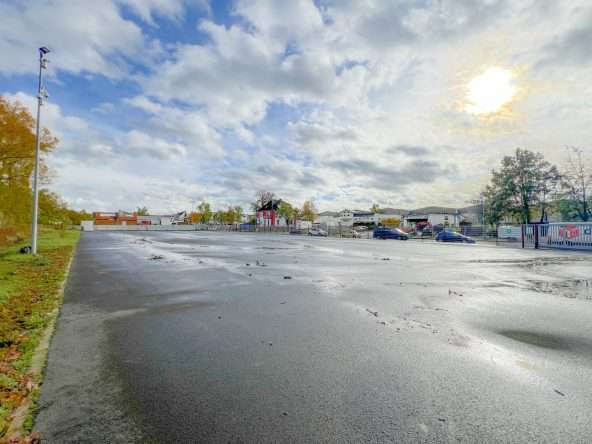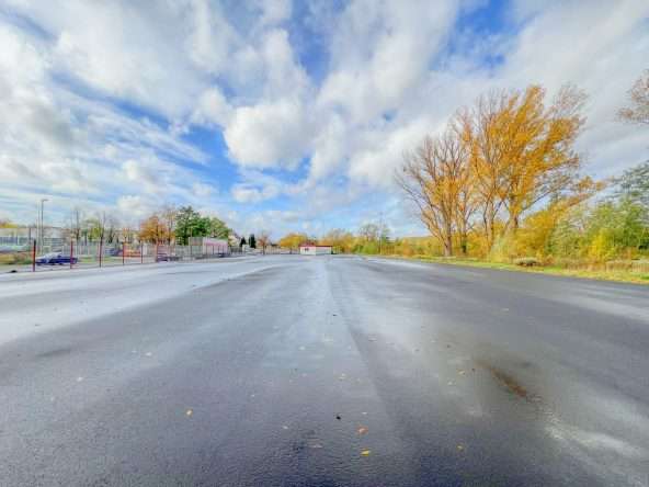 Die befestigte und asphaltierte Nutzfläche umfasst rund 3.500 m² und ist für LKW, Transporter und schwere Maschinen problemlos befahrbar. Durch ihre ebene Struktur eignet sie sich hervorragend als Lagerfläche, Abstellfläche, Logistikfläche, Fuhrparkfläche oder als Außenlager für Geräte, Baumaterial oder Container. Die Zufahrt erfolgt über ein elektrisch betriebenes Einfahrtstor, das über eine Zeitschaltuhr gesteuert wird und eine flexible Nutzung innerhalb der eingestellten Schaltzeiten ermöglicht. Auch die Videoüberwachung sowie die Flutlichtanlage sind zeitschaltuhrgesteuert und sorgen zu den relevanten Betriebszeiten für gute Sichtverhältnisse und ein hohes Sicherheitsniveau. Die Weitläufigkeit der Fläche ermöglicht eine klare Strukturierung von Fahrzeugen, Materialien und Arbeitsbereichen und bietet viel Spielraum für individuelle betriebliche Anforderungen.