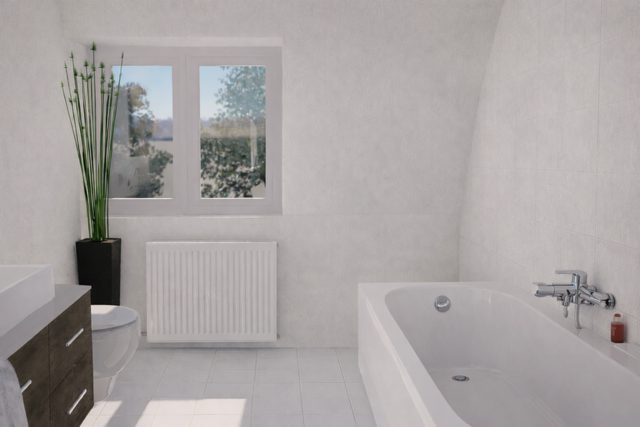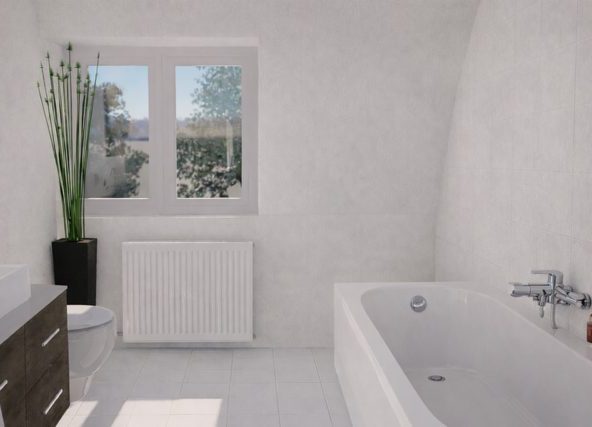 Das freundliche Tageslichtbad verfügt über eine Badewanne, einen Waschmaschinenanschluss und ein WC. Für Gäste steht zusätzlich ein separates WC zur Verfügung – praktisch und komfortabel zugleich. Ein zusätzlicher Abstellraum innerhalb der Wohnung sorgt für kurze Wege und Ordnung im Alltag.