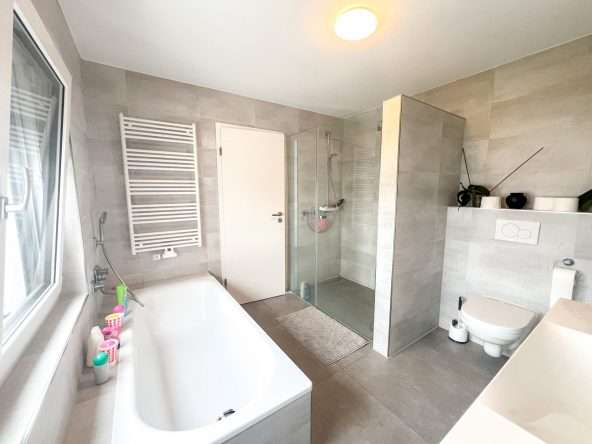 Willkommen in einem Zuhause, das Maßstäbe setzt: Diese großzügige Doppelhaushälfte aus dem Baujahr 2018 vereint moderne Architektur mit durchdachtem Wohnkomfort auf höchstem Niveau. Mit rund 204 m² Wohnfläche, einer durchgängigen Fußbodenheizung bis in den Keller, bodentiefen Fenstern, eleganter Raumaufteilung und lichtdurchfluteten Rückzugsorten ist dieses Haus wie gemacht für Familien mit gehobenen Ansprüchen – oder Paare, die Raum für sich und ihre Lebensentwürfe suchen.